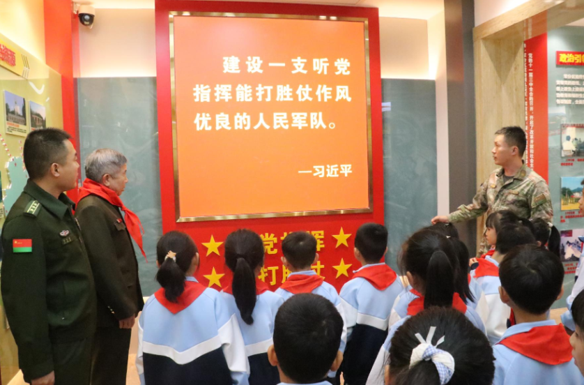抵達(dá)后,得到官兵們熱情接待。孩子們首先列隊步入莊嚴(yán)肅穆的史料館。在講解員的引導(dǎo)下,大家依次參觀了“組建啟航”、“穩(wěn)步前進(jìn)”、“矢志強(qiáng)軍”“砥礪奮進(jìn)”等多個展區(qū)。館內(nèi)展示的一張張泛黃的歷史照片、一件件珍貴的革命文物、一個個逼真的戰(zhàn)斗場景,無不訴說著那段戰(zhàn)火紛飛的崢嶸歲月和革命先輩們?yōu)槊褡濯?dú)立與人民解放浴血奮戰(zhàn)的壯麗史詩。