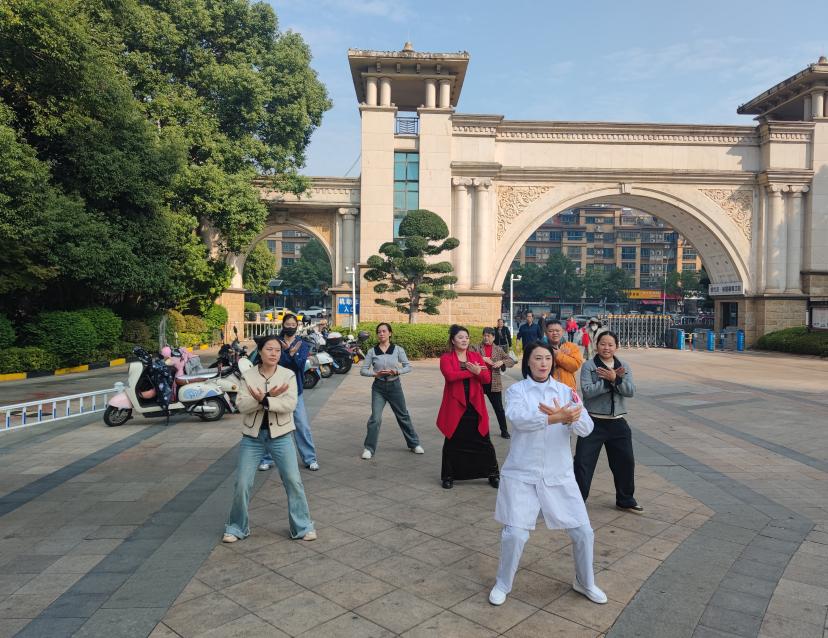 在義診區(qū),來自新余市中醫(yī)院的醫(yī)護(hù)人員耐心細(xì)致地為老人們提供免費(fèi)的血壓、血糖測量服務(wù),并針對老年人常見的高血壓、糖尿病、心血管疾病等問題,提供專業(yè)的健康咨詢和用藥指導(dǎo)。醫(yī)生們不僅解答老人們的健康疑問,叮囑他們注意飲食、合理鍛煉,養(yǎng)成健康的生活習(xí)慣,還用通俗易懂的語言,伴隨著悠揚(yáng)舒緩的古樂,將“兩手托天理三焦”“左右開弓似射雕”等八個動作的要領(lǐng)、呼吸方法和養(yǎng)生原理逐一拆解、耐心示范,傳授中華傳統(tǒng)養(yǎng)生功法——八段錦,將“治未病”的健康理念送到了百姓家門口。