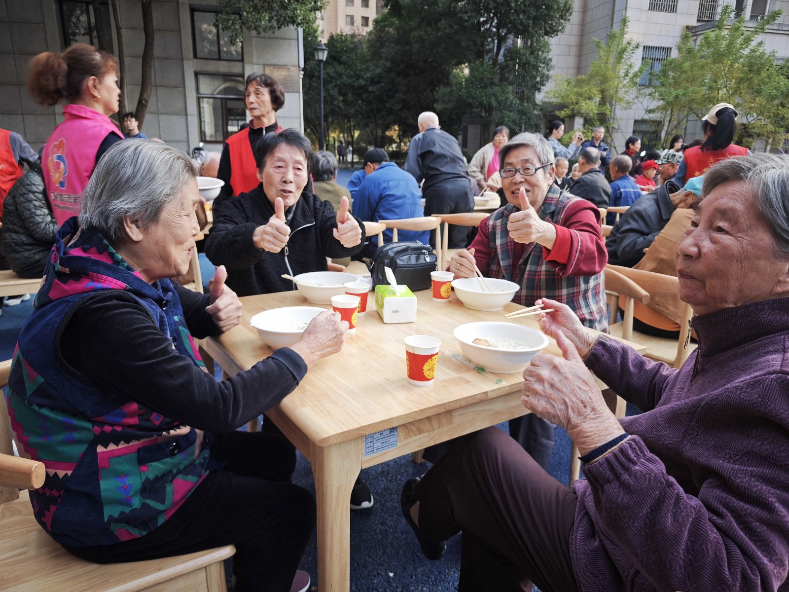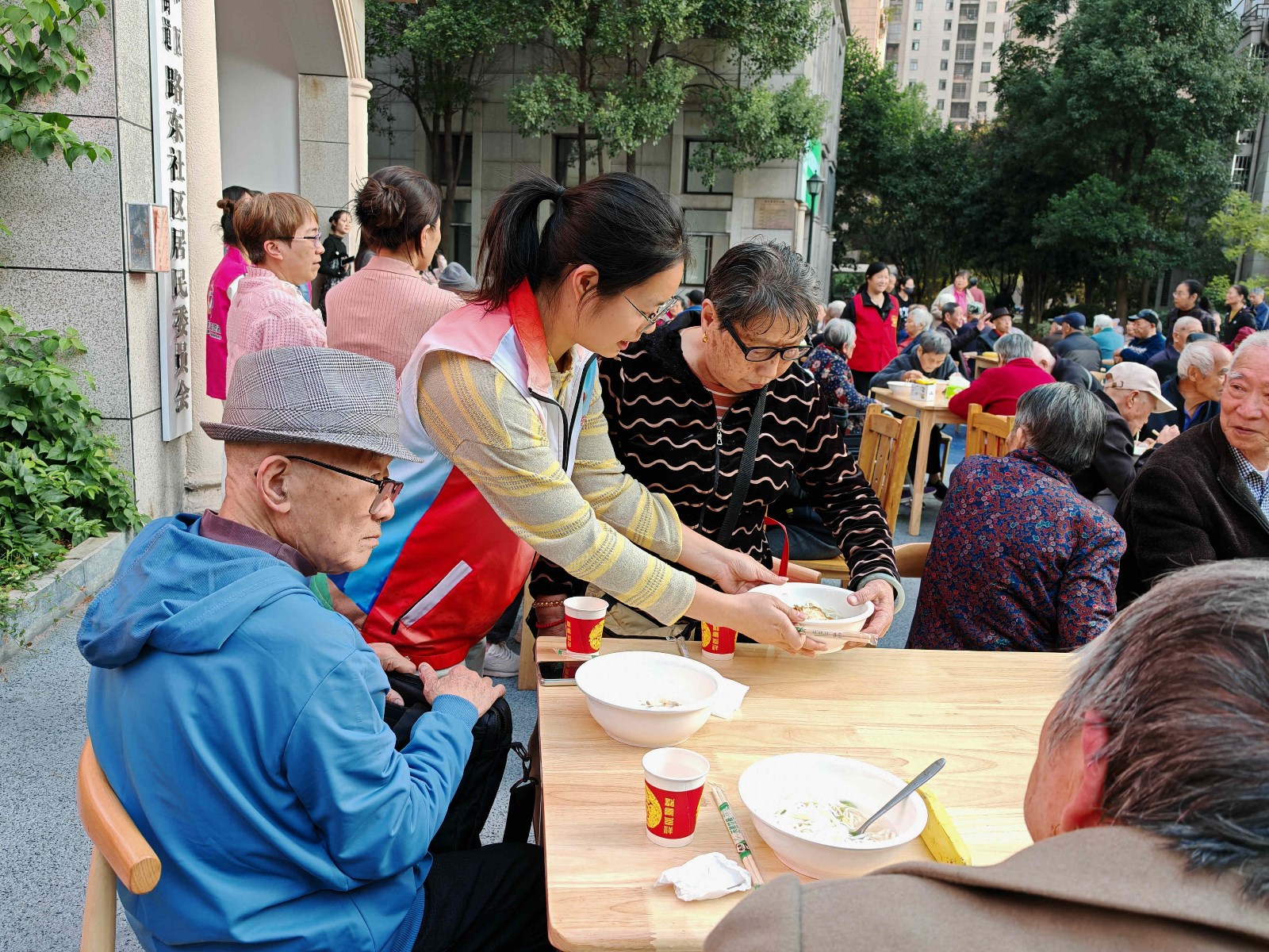 活動現(xiàn)場洋溢著歡樂祥和的氣氛。在"經(jīng)典老歌猜猜猜"互動環(huán)節(jié)中,老人們凝神聆聽,踴躍參與,一首首熟悉的旋律喚醒了大家的美好回憶,現(xiàn)場掌聲陣陣,笑語連連。隨后,社區(qū)工作人員和志愿者們?yōu)殚L者們奉上了精心熬制的長壽面,面條軟滑,湯鮮味美,飽含著對老人們健康長壽的美好祝愿。工作人員還貼心地為每位老人準備了水果,大家品嘗著美味的面條和水果,閑話家常,每個人的臉上都洋溢著幸福的笑容。