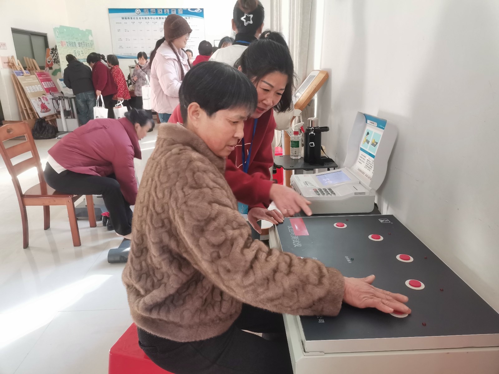 為進(jìn)一步推動(dòng)全民健身和全民健康深度融合,1月13日上午,江西省新余市渝水區(qū)城北街道締景社區(qū)關(guān)工委聯(lián)合新余市國(guó)民體制檢測(cè)中心為小區(qū)老人免費(fèi)進(jìn)行檢測(cè),為老人送上暖心福利!檢測(cè)涵蓋量血壓、身高、體重、肺活量、握力、背力、1分鐘仰臥起坐、閉眼單腳站立、選擇反應(yīng)時(shí)測(cè)試、腰圍、臀圍、縱跳、俯(跪)臥撐坐位體前屈、心肺功能等多項(xiàng)指標(biāo),幫助老人們科學(xué)了解健康狀況。活動(dòng)現(xiàn)場(chǎng),社區(qū)工作人員、網(wǎng)格員還同步開(kāi)展了文明創(chuàng)建宣傳,并為大家準(zhǔn)備了貼心小禮品。
