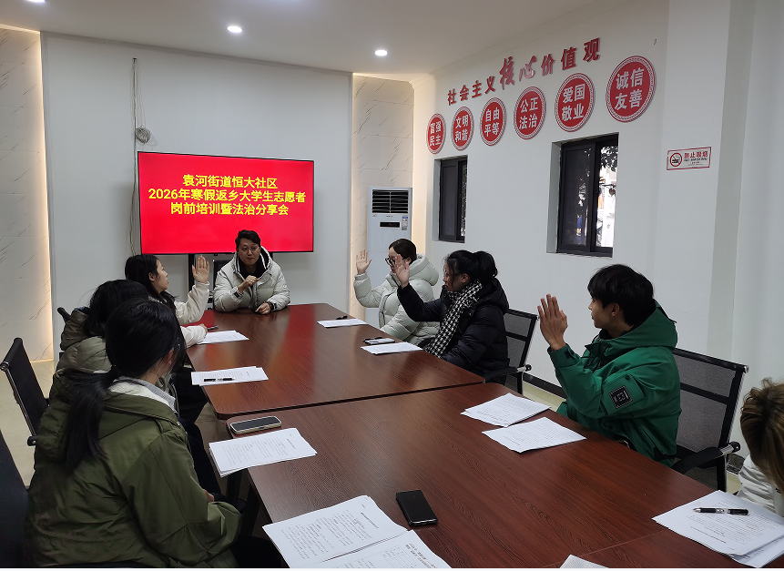 為進一步增強返鄉(xiāng)大學生的法治意識和社會責任感,助力青年學子更好服務家鄉(xiāng)文明建設,1月22日,袁河街道恒大社區(qū)關(guān)工委組織開展2026年寒假返鄉(xiāng)大學生志愿者崗前培訓暨法治分享會,渝水區(qū)恒大社區(qū)紅色宣講團秘書長程南南以一名人民陪審員的身份進行法治分享活動。