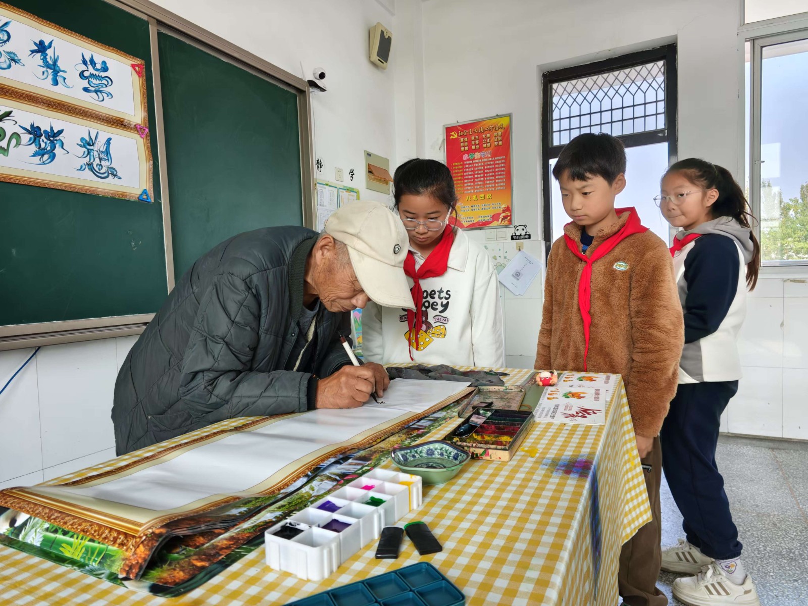 活動(dòng)中,花鳥字傳承人向師生們展示了花鳥字的獨(dú)特魅力。張老運(yùn)用自制的畫筆,蘸上鮮艷的顏料,在銅版紙上揮灑自如,一筆一劃間,花鳥蟲魚等自然元素躍然紙上,形成了一幅幅生動(dòng)的花鳥字作品。學(xué)生們被這種獨(dú)特的藝術(shù)形式深深吸引,紛紛表示要好好學(xué)習(xí)花鳥字,傳承非遺文化。