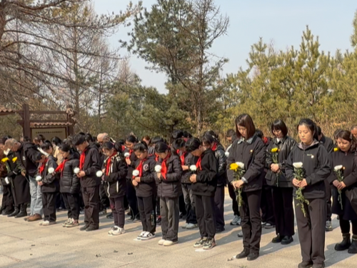 在莊嚴(yán)的默哀與三鞠躬后,全體人員依次敬獻鮮花,表達對英烈的深切緬懷。少先隊員在隊旗下重溫入隊誓詞,錚錚誓言彰顯傳承紅色基因、勇?lián)鷷r代使命的堅定信念。